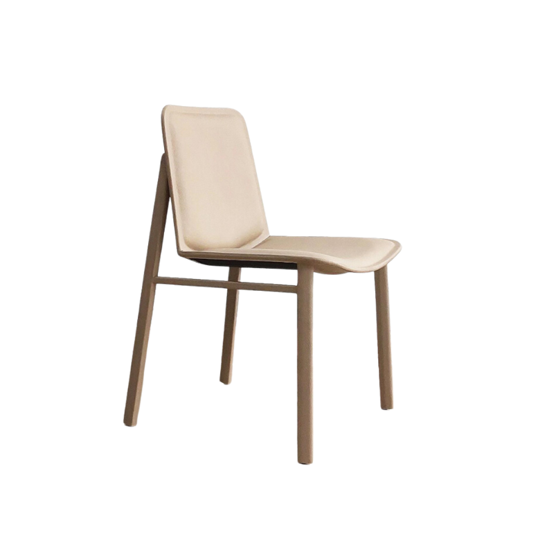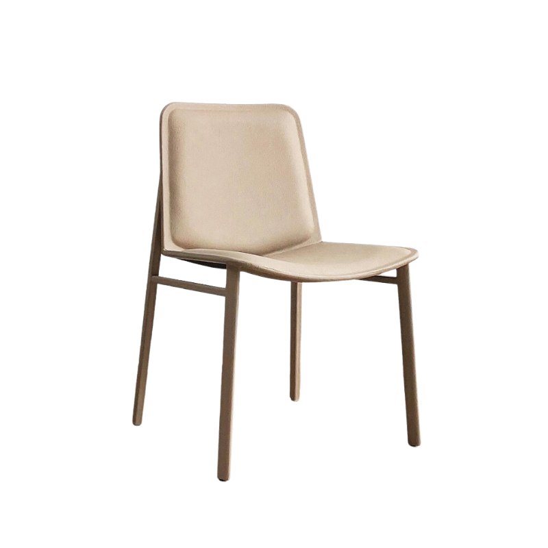 Cadeira com estrutura em metal revestida com couro ecosoft e assento estofado.